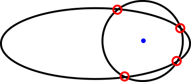 Finding the distance between a point and an ellipse involves solving a quartic equation. The ellipse can intersect an ellipse at most four times.